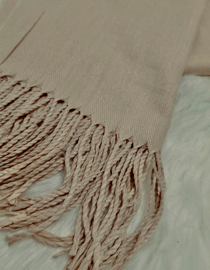Fabric Description:• Winter Cashmere• Size: 71 x 29 inches (approximately) Design Description:The perfect light-weight winter hijab to keep you cozy in the cold!Stitching Details: String tassels on shorter sidesShape: Long rectangleTexture: NoneVisibility: Opaque Ironing: Needed for first timeWearability: Not SlipperyAlthough we try...