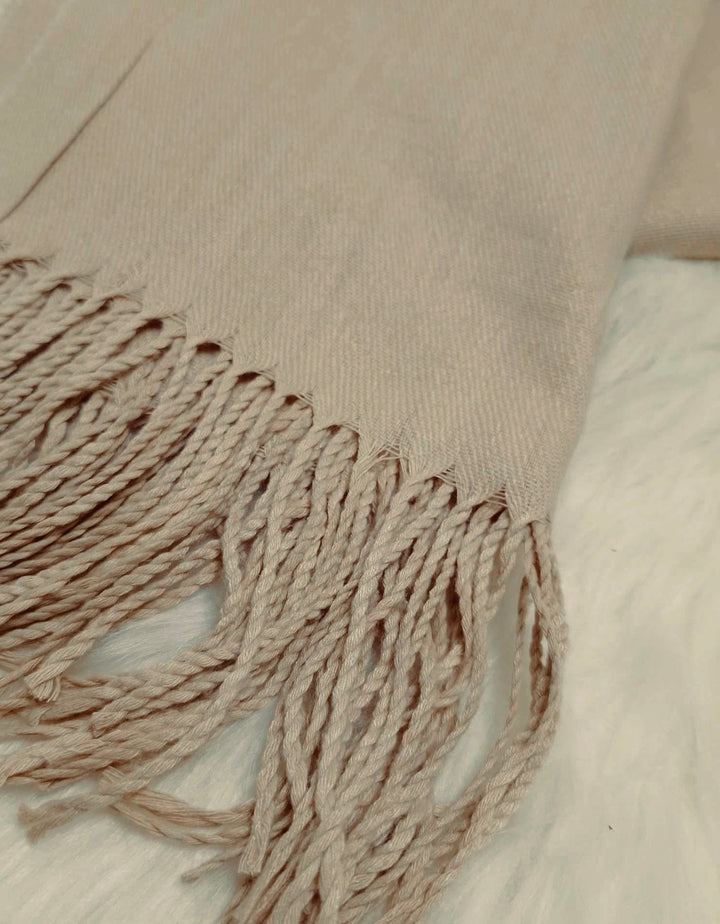 Fabric Description:• Winter Cashmere• Size: 71 x 29 inches (approximately) Design Description:The perfect light-weight winter hijab to keep you cozy in the cold!Stitching Details: String tassels on shorter sidesShape: Long rectangleTexture: NoneVisibility: Opaque Ironing: Needed for first timeWearability: Not SlipperyAlthough we try...